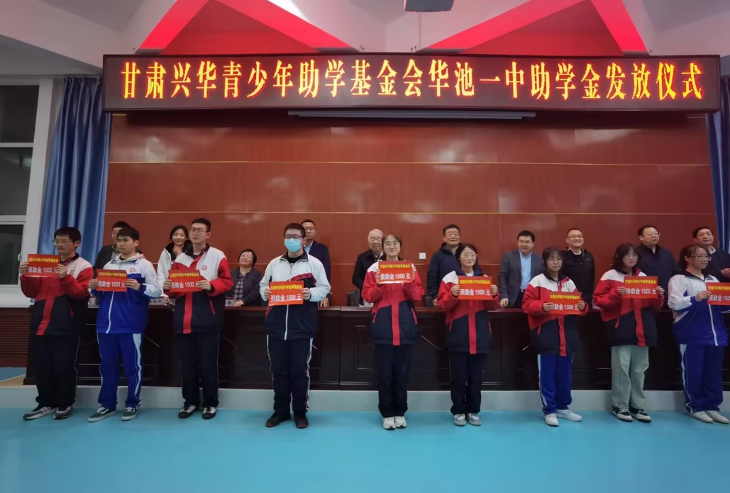 (圖:公司領(lǐng)導(dǎo)代表參加華池一中助學(xué)金發(fā)放儀式)
